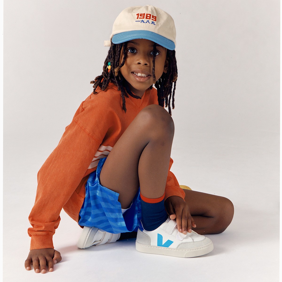 Veja Kid’s Shoes V-12 Leather White Aqua Paros